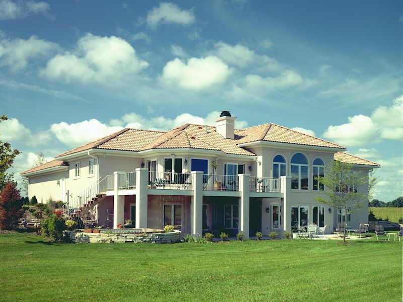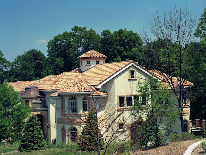 This magnificent roof tile's characteristic one-piece, rolling barrel design recalls the old Southwest's rugged grandeur and sunbaked skies. Although the traditional adobe roof tiles are the color most often used to recapture the elegance and dramatic shadow lines of this era, each high-barrel roof tile can be treated with various custom-crafted colors and hand-tooled textures.