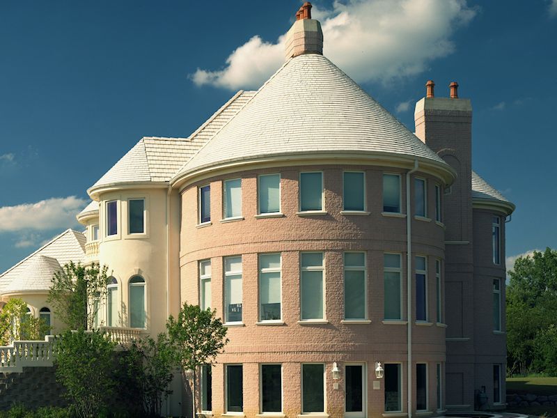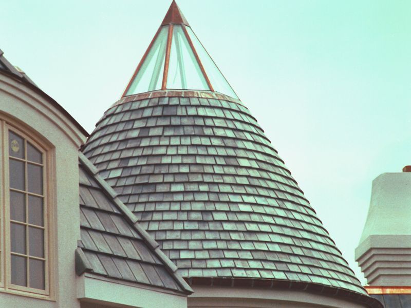 Non-tapered pans and covers can be used for conventional sloped roofs. Tapered turret shingles are custom-designed with the same attention to detail to craft the perfect top-to-bottom fit on curved or turret roofs. Our turret pans and covers are available in any of our custom colors. View more color options on our gallery page.